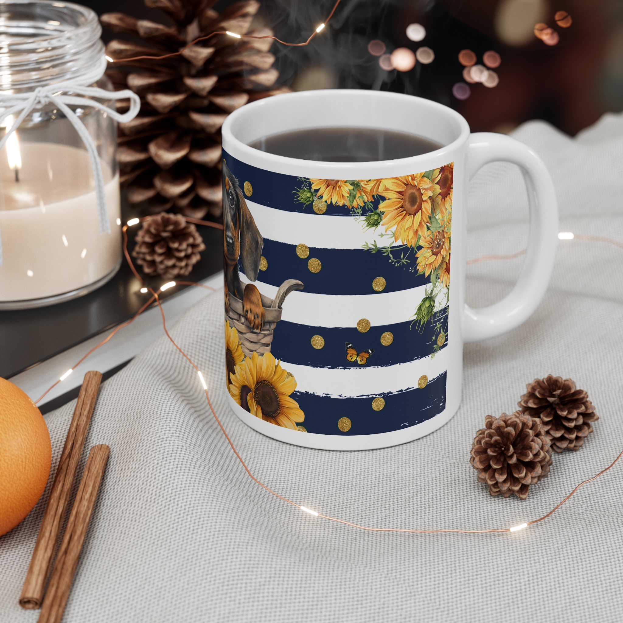 An everlasting favourite, this custom mug is designed for those who appreciate the ritual of savouring their favourite beverage. Crafted from durable white ceramic and sized at 11oz, it’s an ideal gift when personalized with this cute Dachshund design for any coffee or tea lover.