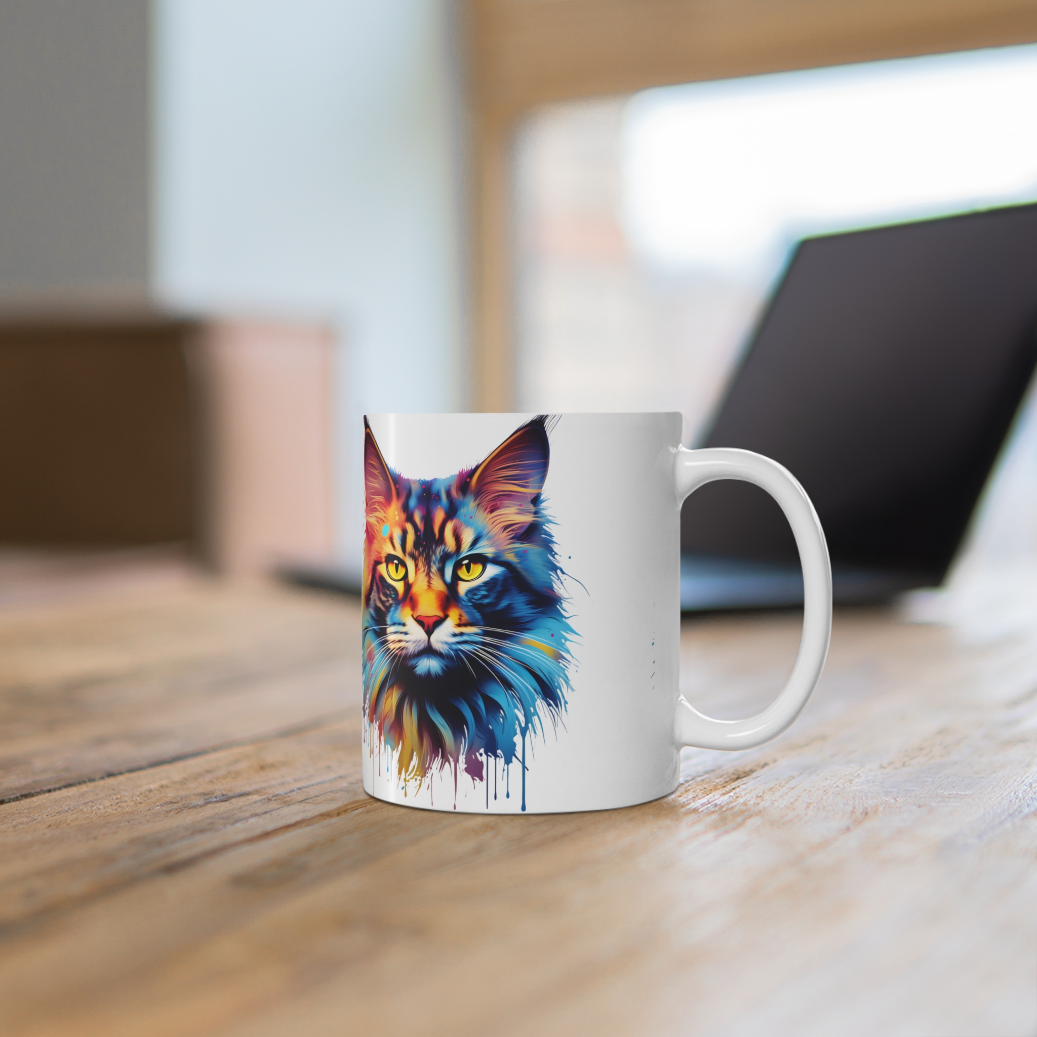 Watercolour Maine Coon Mug – Enjoy your favourite beverage with this charming 11oz white ceramic mug featuring a stunning watercolour design!